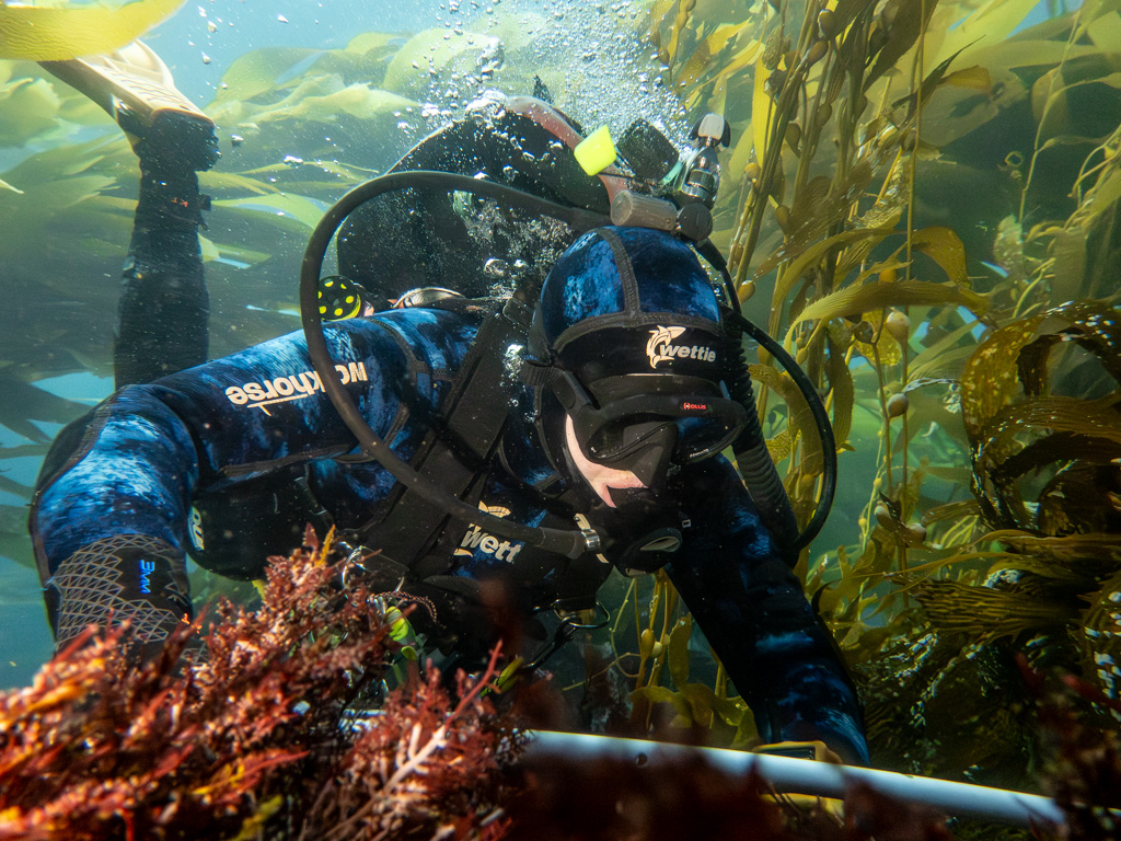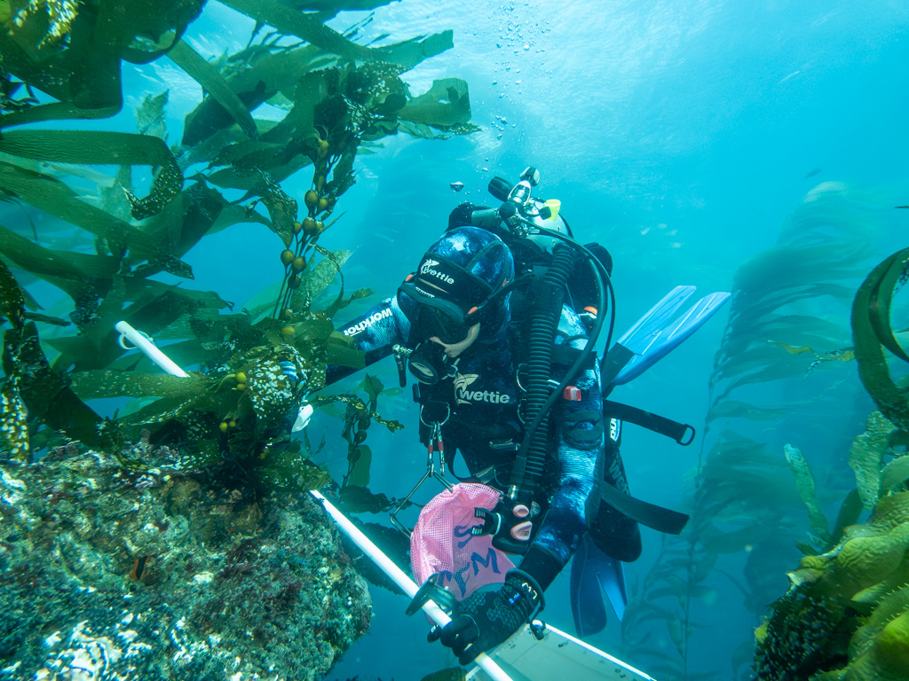 Thanks to the dedication of these three, we were able to get back out in the afternoon so the team could work. By the time Thursday rolled around, nothing was going to get between me and a dive. While my ear didn’t look particularly better, it didn’t look worse, and that was good enough for me. The kelp was calling me! Since I don’t have the species identification background to help with KFM protocols, I get to use a camera while everyone is diligently working.