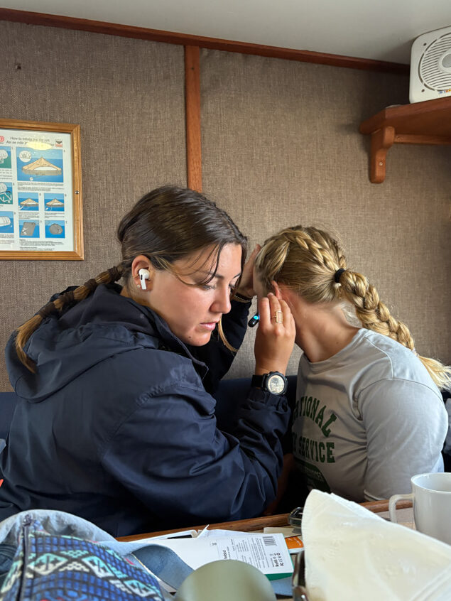 I found out soon enough. Probably my fifth sentence after being picked up at the airport shuttle by Kenan Chan, Biological Science Technician and Lead Fisheries Diver, went something like “soooo, I also have a super gnarly ear infection, nice to meet you.” He assures me the KFM team is used to dealing with petulant ears, and I’m in good hands. The team has an “ear camera” on board, and while my ears were feeling much better, a quick check revealed they were far from normal. I’ll leave out the details, but everyone on board agreed my ears were by far the grossest they’d seen. Marvelous.