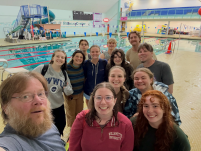 Caption: the dive class team after a particularly challenging pool session with big smiles on our faces